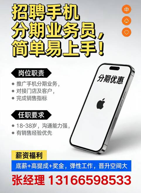 招聘手机销售业务员,简单易上手!